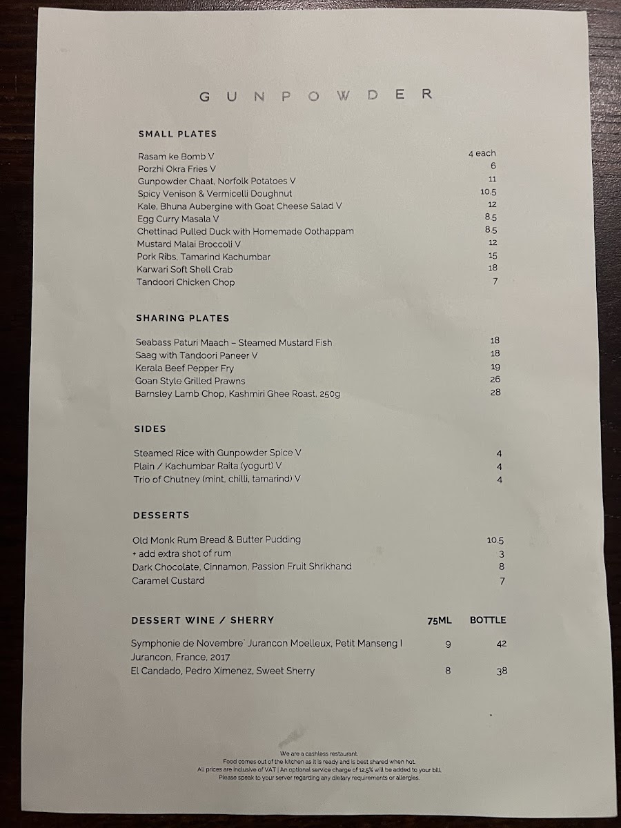 Overall, Gunpowder is a top choice for those seeking a high-quality, modern Indian dining experience in London. Whether you’re a fan of bold, smoky flavors or looking for a refreshing twist on vegetarian classics, this spot offers something for everyone.